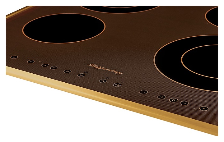 Электрическая варочная панель Kuppersberg FA6RC Bronze предназначена для приготовления большого ассортимента блюд на предприятих общественного питания и в домашних условиях. Модель оснащена 4 варочными зонами различного диаметра, сенсорной панелью управления и 5 цифровыми дисплеями. Поверхность выполнена из высококачественной стеклокерамики EuroKera с декоративной металлической рамкой ручной работы цвета бронзы.