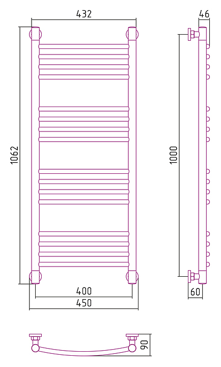 Полотенцесушитель водяной Сунержа Богема+ 100x40 см с прямой перемычкой, матовый белый