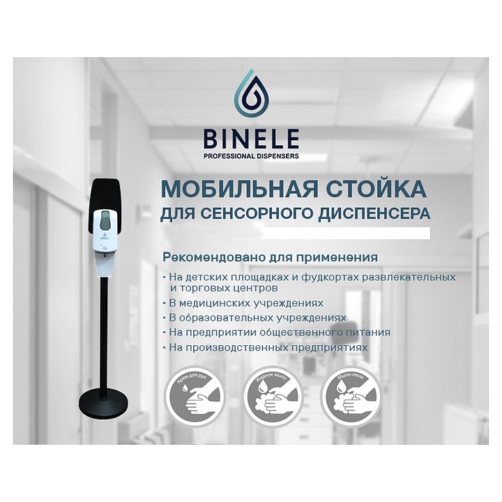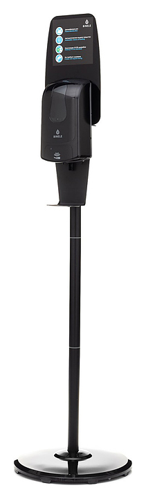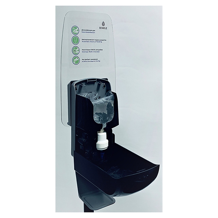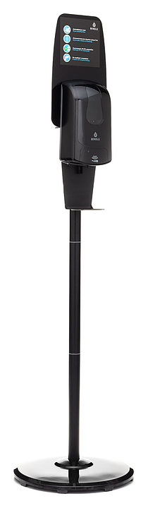 Комплект мобильной стойки для дезинфекции рук BINELE SF05AB с картриджным сенсорным диспенсером, черная