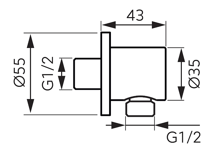 Угловой подвод FERRO PKN12 выполнен в современном стиле и предназначен для душевого шланга. Изделие выполнено из высококачественной латуни, которая отличается прочностью, долговечностью и устойчивостью к перепадам температур. Особенности: