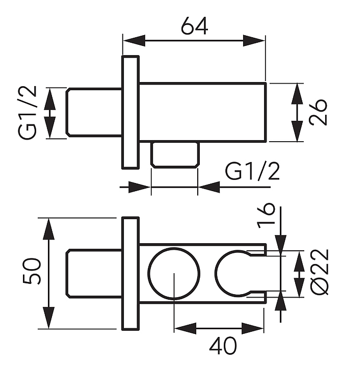 Подвод угловой для душевого шланга с держателем FERRO PKN15