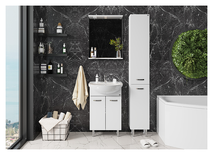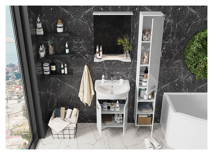 Зеркало Onika КОРАЛЛ 55.01 от российского бренда дополнит интерьер ванной комнаты. Благодаря подвесной конструкции модель не занимает много места, что позволяет экономить пространство, а также облегчает уборку. Зеркало оснащено полочкой, LED-светильником, выключателем и встроенной розеткой. Основа выполнена из ЛДСП, полка и козырек - из МДФ в пленке, устойчивой к механическим воздействиям, перепадам температур и высокой влажности. В комплект поставки входят подвесы для крепления к стене. Дополнительные характеристики: