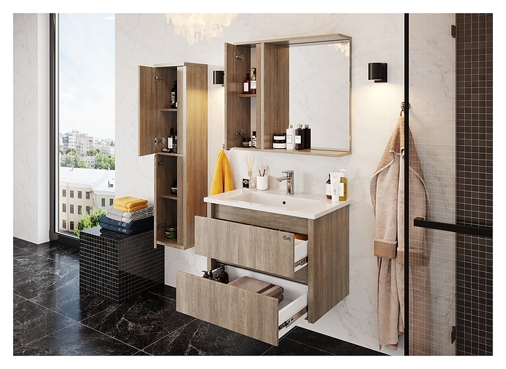 Зеркало Onika АМАРА 75.00 от российского бренда дополнит интерьер ванной комнаты. Благодаря подвесной конструкции модель не занимает много места, что позволяет экономить пространство, а также облегчает уборку. Изделие оснащено шкафчиком с распашной дверцей и полкой в нижней части. Изделие выполнено из ЛДСП, устойчивой к механическим воздействиям, перепадам температур и высокой влажности. В комплект поставки входят подвесы для крепления. Дополнительные характеристики: