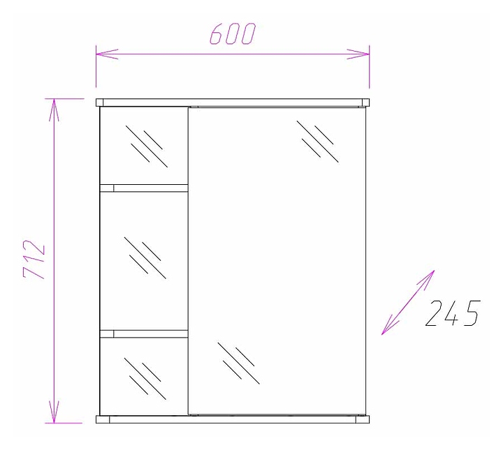 Шкаф зеркальный Onika КАРИНА 60.01 левый