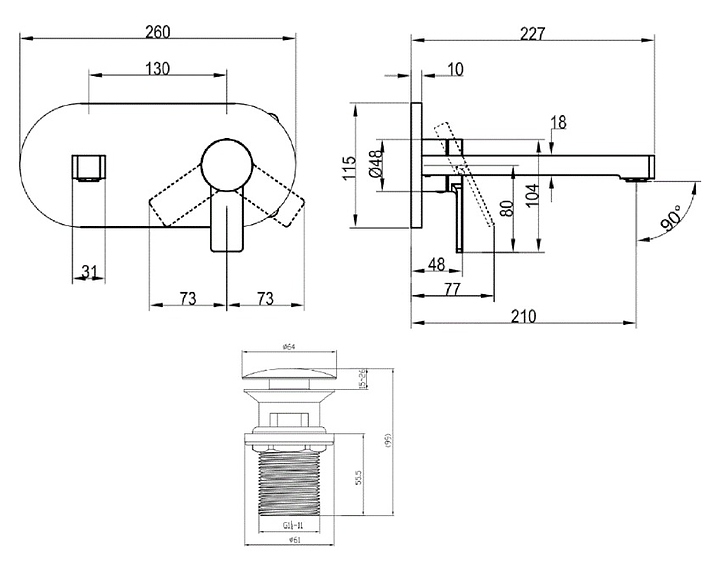 Смеситель для раковины настенный встраиваемый Villeroy & Boch Architectura TVW10311211061