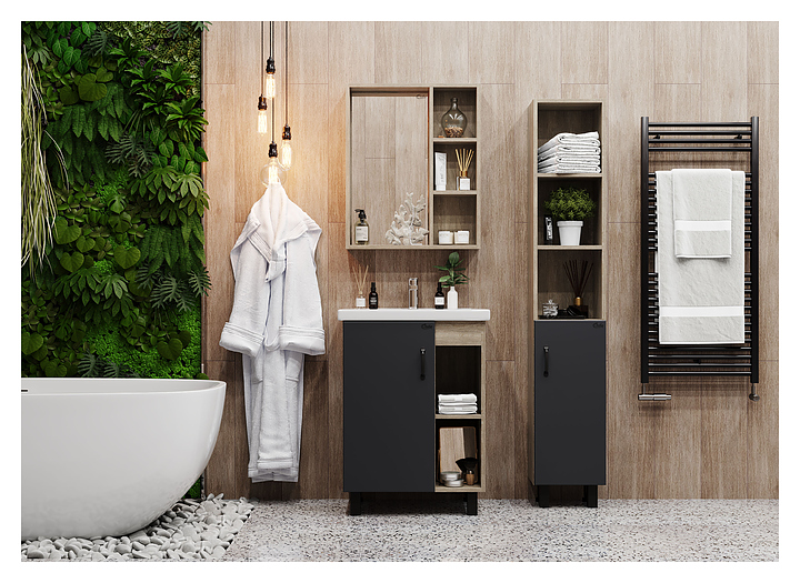 Шкаф-пенал Onika ТИМБЕР 30.01 дополнит интерьер ванной комнаты. Модель оснащена распашной дверью с плавным закрыванием, полкой за дверью, 2 открытыми полками в верхней части и ножками, защищающими конструкцию от воздействия влаги в случае намокания пола. Корпус выполнен из ЛДСП, фасад - из МДФ в пленке, устойчивой к механическим воздействиям, перепадам температур и высокой влажности. В комплект поставки входят ручка, 2 декоративные и 2 пластиковые ножки. Дополнительные характеристики: