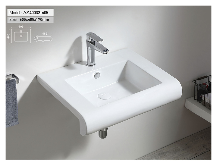 Раковина подвесная Azario AZ40032605 60,5х48,5х17 см, фаянс
