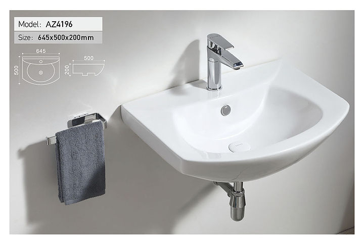 Раковина подвесная Azario AZ4196 64,5х50х20 см, фаянс