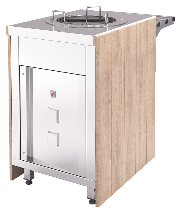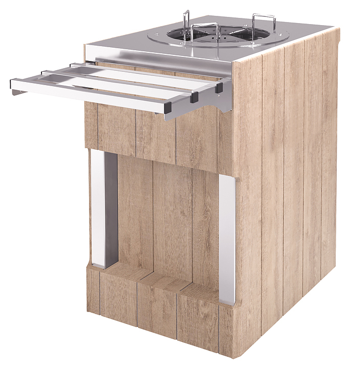 Диспенсер для тарелок Refettorio Capital RD20S используется в составе линии раздачи Capital на предприятиях общественного питания и торговли для временного хранения тарелок и поддержания их в теплом состоянии. Модель оснащена функциональной емкостью, предназначенной для размещения тарелок. Столешница выполнена из кварцевого агломерата, фасад - из ламинированного МДФ. Особенности: