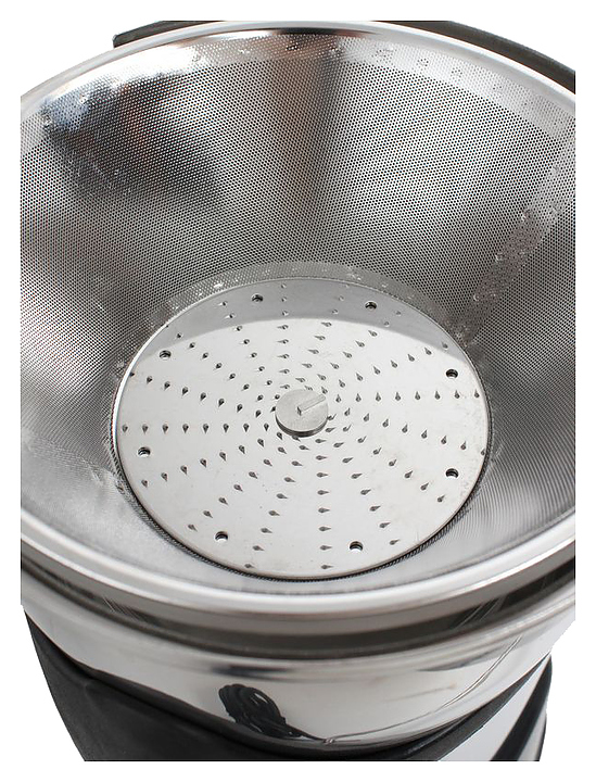 Соковыжималка Santos серия 50 используется на предприятиях общественного питания и торговли для приготовления свежего сока из овощей и фруктов, цитрусовые перед отжимом необходимо очищать. Модель оснащена широким круглым загрузочным отверстием, благодаря которому исключается необходимость разрезания фруктов и овощей, и мощным двигателем с термической защитой. Емкость и корпус выполнены из нержавеющей стали, съемная центрифужная корзина - из микроперфорированного листа нержавеющей стали. Особенности: