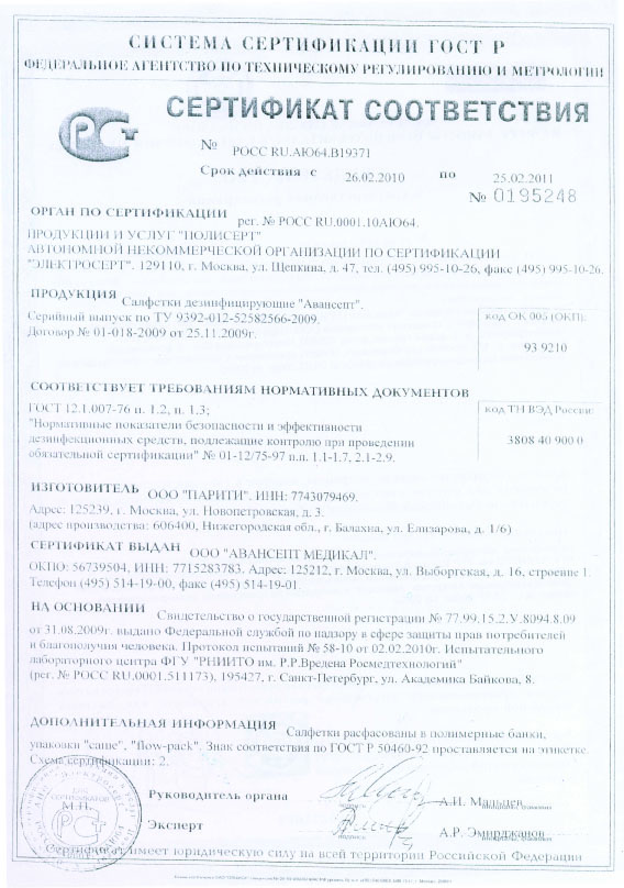 Дезинфицирующие салфетки Техноэкспорт Авансепт, жёлтые, 70 шт используются в медицинских и лечебно-профилактических организациях различного профиля, на предприятиях общественного питания и торговли, в учреждениях социального обеспечения, образования, культуры, спорта и отдыха, в офисах, на объектах коммунально-бытовых служб, в быту для дезинфекции небольших по площади непористых поверхностей в помещениях, а также для санитарной обработки рук и ступней ног. Представляют собой салфетки из нетканого материала со слабым специфическим запахом спирта и применяемой отдушки. Поставляются в пластиковой банке. Минимальный размер заказа - 15 банок, цена указана за 1 шт. Особенности: