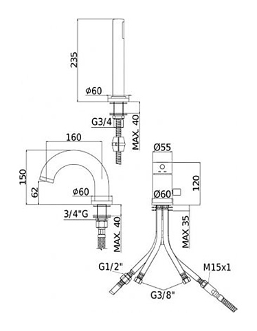 Смеситель для ванны с душем Paffoni Light LIG047ST сталь