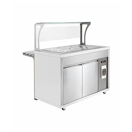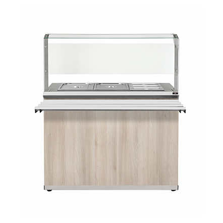 Паровой мармит Luxstahl МВП (С)-1500 используется в составе линии раздачи Luxstahl на предприятиях общественного питания и торговли для поддержания в горячем состоянии гастроемкостей со вторыми блюдами, гарнирами и соусами. Модель оснащена терморегулятором и 3 ПЭНами, осуществляющими нагрев воды. В комплект поставки входят 1 гастроемкость GN 1/1 глубиной 150 мм, 2 гастроемкости GN 1/2 глубиной 150 мм и 3 гастроемкости GN 1/3 глубиной 150 мм. Дополнительные характеристики: