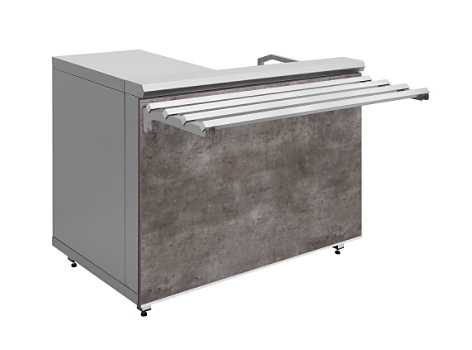 Кассовый прилавок Luxstahl КК-1200 используется используется в составе линии раздачи Luxstahl на предприятиях общественного питания и торговли для оборудования рабочего места продавца-кассира. Модель оснащена розеткой для подключения кредитно-кассового аппарата и вместительной полкой в нише. Особенности: