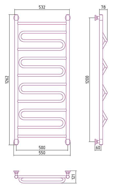 Полотенцесушитель водяной Сунержа Элегия+ 120x50 см темный титан муар