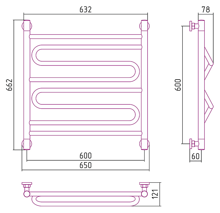 Полотенцесушитель водяной Сунержа Элегия+ 60x60 см без покрытия