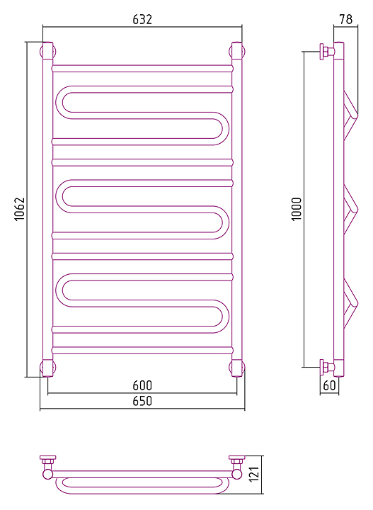 Полотенцесушитель водяной Сунержа Элегия+ 100x60 см темный титан муар