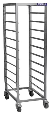 Тележка-шпилька КАМИК Шпр-9202 предназначена для временного хранения и транспортировки посудокассет в столовых, барах, ресторанах и на других предприятиях общественного питания и торговли. Модель оснащена 4 маневренными поворотными роликами. Корпус и направляющие выполнены из профиля высококачественной нержавеющей стали AISI 430. Особенности: