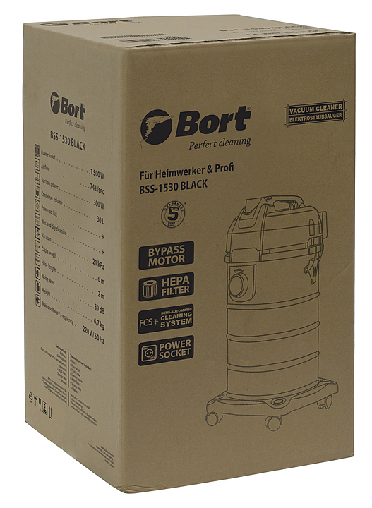 Пылесос Bort BSS-1530 BLACK предназначен для обработки различных напольных покрытий в частных домах, квартирах, отелях и офисах, гаражах и мастерских. Модель оснащена гибким всасывающим шлангом, патронным НЕРА фильтром и роликовыми колесами. Бак выполнен из нержавеющей стали с защитным напылением черного цвета, крыльчатка - из металла. Комплектация: