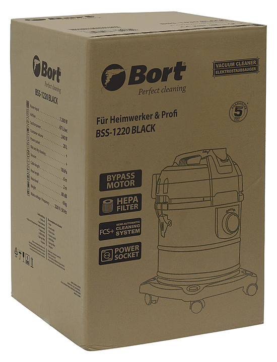 Пылесос Bort BSS-1220 BLACK предназначен для обработки различных напольных покрытий в частных домах, квартирах, отелях и офисах, гаражах и мастерских. Модель оснащена гибким всасывающим шлангом, патронным НЕРА фильтром и роликовыми колесами. Бак выполнен из нержавеющей стали с защитным напылением черного цвета, крыльчатка - из металла. Комплектация: