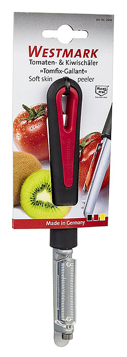 Нож Westmark 29462270 используется на предприятиях общественного питания и торговли, а также в домашних условиях для очистки от кожуры томатов и киви. Изделие оснащено удобной ручкой с отверстием на конце. Плавающее лезвие выполнено из нержавеющей стали, ручка - из пластика. Особенности: