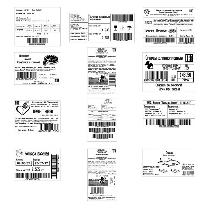 Размещение нескольких штрихкодов и рисунков на одной этикетке