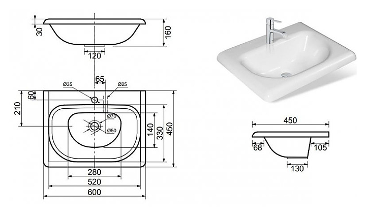 Раковина ЭСТЕТ Оливия 60 ФР-00000798 выполнена в современном стиле. Модель оснащена широкими задней и боковыми поверхностями, на которых можно размещать необходимые аксессуары для ежедневного использования. Встраиваемая конструкция позволяет экономить место в ванной комнате для хранения туалетных принадлежностей. Изделие выполнено из литого мрамора, состоящего из мраморной крошки в сочетании с полиэфирным смолами, обладающего повышенной прочностью и устойчивостью к негативным внешним факторам. В комплект поставки входит слив-перелив. Смеситель в комплект поставки не входит и приобретается отдельно. Особенности: