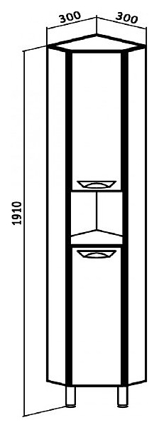 Шкаф-пенал Runo 30 угловой выполнен в современном стиле и идеально впишется в интерьер любой ванной комнаты. Модель оснащена 2 распашными дверями и открытой нишей посередине. Корпус выполнен из влагостойкой ЛДСП, фасад - из МДФ с пленкой ПВХ, которая отличается устойчивостью к повышенной влажности и простотой в уходе. Комплект поставки: