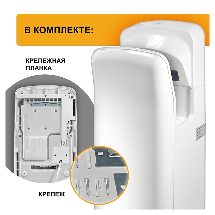 Погружная сушилка Puff 8878B предназначена для быстрой сушки рук в гостиницах, отелях, бассейнах, фитнес-клубах и спа-центрах. Модель оснащена каплесборником и кнопкой отключения горячего воздуха. Корпус выполнен из ABS-пластика. В комплект поставки входит крепежная планка. Особенности: