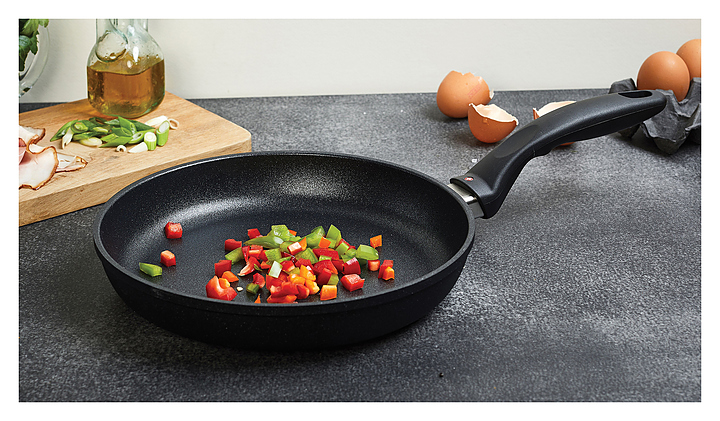 Сковорода Swiss Diamond XD 6424IC предназначена для приготовления широкого спектра блюд на любых типах варочных поверхностей, включая индукционные, на предприятиях общественного питания и торговли, а также в домашних условиях. Модель оснащена сбалансированной фиксированной рукояткой с отверстием для подвешивания. Корпус выполнен из сплава алюминия и кремния методом литья под высоким давлением с последующей пескоструйной шлифовкой и плазменным напылением для усиления адгезии внешнего покрытия, рукоятка – из термостойкого бакелита, крышка – из закаленного стекла на металлическом ободе. В комплект поставки входит крышка с круглой ручкой и регулируемым паровым отверстием. Особенности: