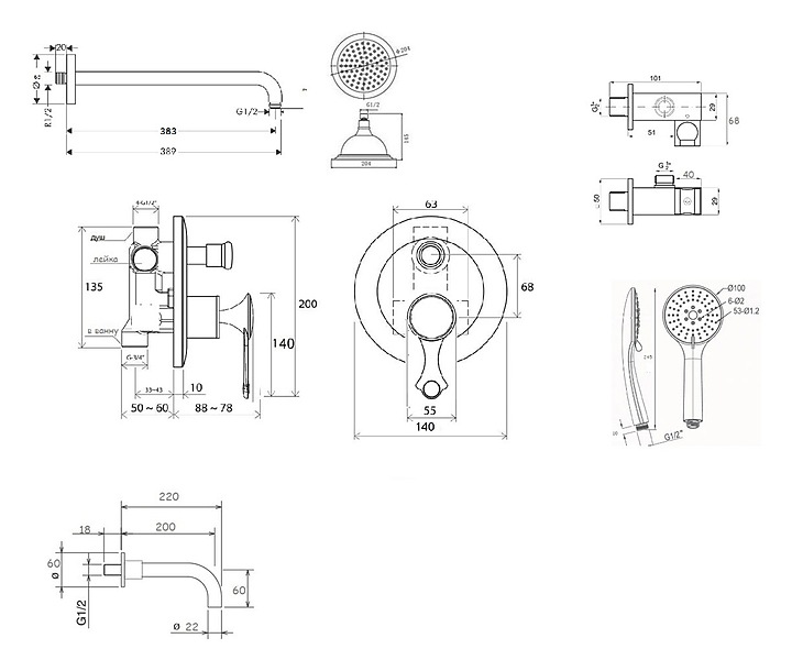 Комплект душевой Bronze de Luxe Yasmina NT800/B03