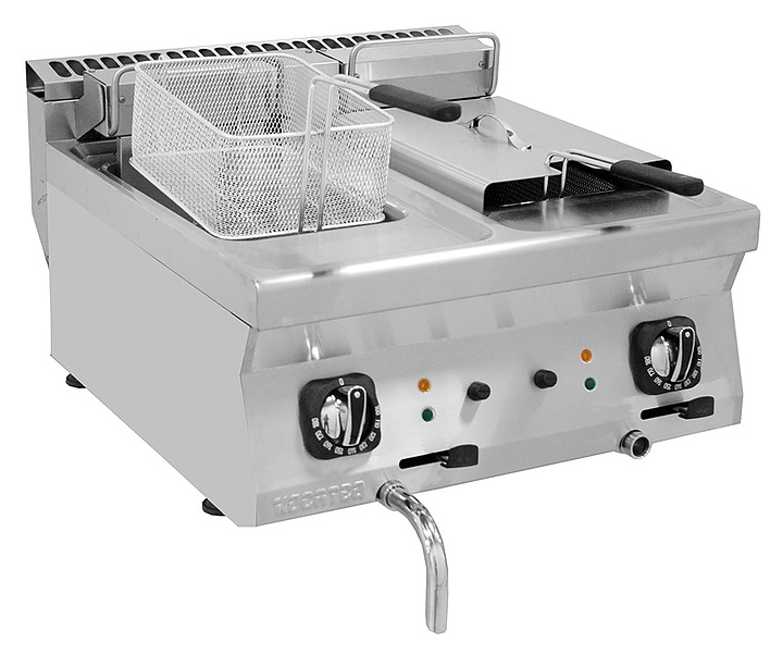 Электрическая фритюрница Kocateq MCEF 66 используется в составе тепловой линии 600 или отдельно на предприятиях общественного питания и торговли для приготовления различных продуктов в большом количестве масла или жира. Модель оснащена термостатом и регулируемыми по высоте ножками. Корпус выполнен из нержавеющей стали. В комплекте поставки входят 2 хромированные корзины, специальная структура для подвешивания корзины над емкостью и крышки. Особенности: