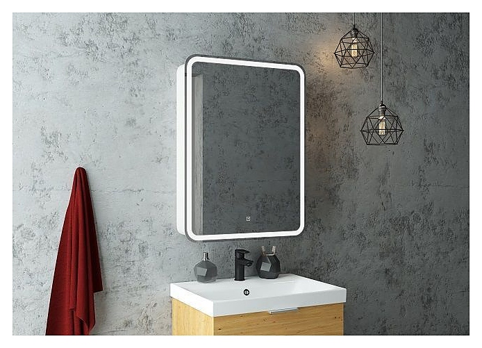 Зеркальный шкаф Art&Max AM-Pla-600-800-1D-L-DS-F выполнен в современном стиле и отлично дополнит интерьер любой ванной комнаты. Благодаря подвесной конструкции модель не занимает много места, что позволяет экономить пространство в небольшой ванной комнате. Модель оснащена одной распашной дверцей с фурнитурой TITUS с доводчиками для плавного закрывания и встроенной светодиодной LED подсветкой с диммером и датчиком на движения. Матовый корпус изготовлен из влагостойкого МДФ. В комплект поставки входят розетка для электроприборов и крепежный набор. Особенности: