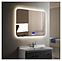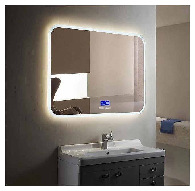 Зеркало Doratiz Ева 2711.921 дополнит интерьер ванной комнаты. Модель оснащена LED-подсветкой в форме ленты, сенсорным выключателем с функцией плавного диммирования, запоминанием последнего значения и обогревом зеркальной поверхности против запотевания. В зеркало встроен многофункциональный модуль, который включает в себя часы, радио, bluetooth-подключение, термометр и динамики для вывода звука. Короткие касания светящейся области включают/выключают подсветку, длительное касание меняет яркость свечения. Изделие выполнено из влагостойкого стекла с минимальными оптическими искажениями, корпус - из пластика. В комплект поставки входит крепление. Особенности:
