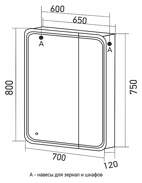 Шкаф зеркальный Mixline Адриана 70х80 см с подсветкой и сенсорным выключателем, левый