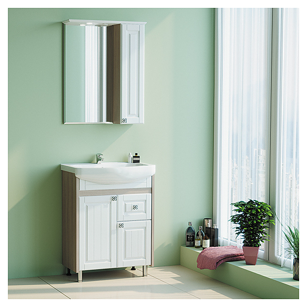 Шкаф зеркальный Mixline Версаль-65 64х81,6 см с подсветкой, правый, белое дерево