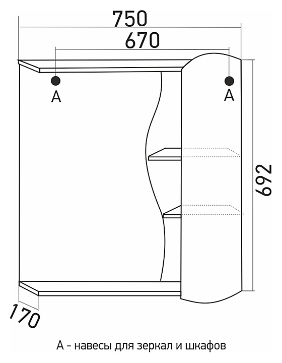 Шкаф зеркальный Mixline Ассоль-75 75х69,2 см с подсветкой, правый