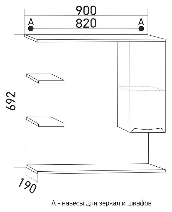 Шкаф зеркальный Mixline Этьен-90 90х69,2 см с подсветкой, правый