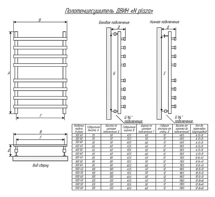 Полотенцесушитель водяной Двин 4656759171308 N Plaza 60/50 К3, чёрный матовый