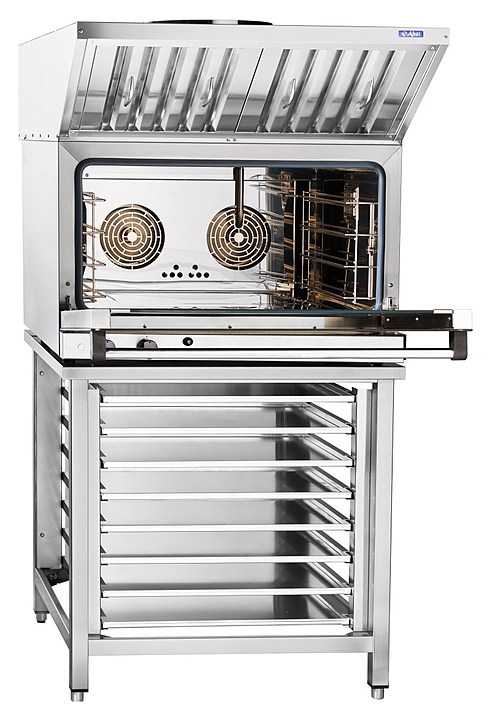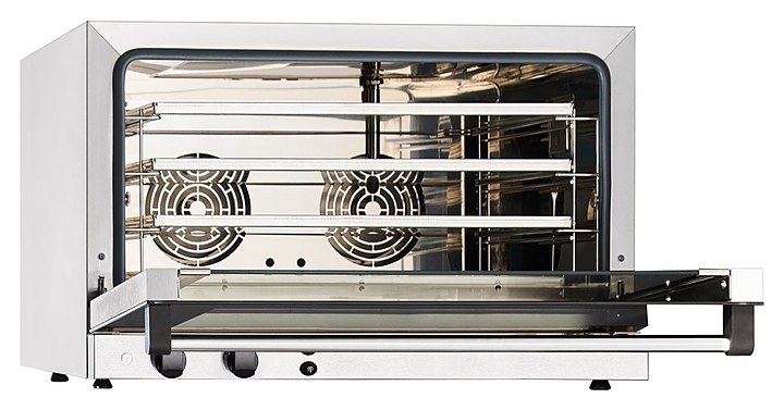 Конвекционная печь Abat КЭП-3 предназначена для выпечки и разогрева кондитерских и хлебобулочных изделий, термической обработки продуктов при консервации, а также приготовления различных блюд на предприятиях общественного питания и торговли. Модель оснащена трубчатым электронагревательным элементом, откидной дверью с горизонтальной рукояткой, электромеханической панелью управления с 2 круговыми регуляторами и светодиодными индикаторами. Внутренняя облицовка камеры выполнена из высококачественной нержавеющей стали AISI 304. Расстоечный шкаф, подставка и вытяжной зонт не входят в комплект поставки и приобретаются отдельно. Рекомендуется дополнительно приобрести водоумягчитель и фильтр-систему для очистки и смягчения воды. Особенности: