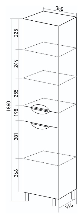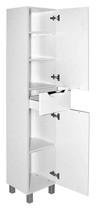 Шкаф-пенал Mixline Кассиопея-35 легко впишется в интерьер любой ванной комнаты. Коллекция Кассиопея выполнена в современном стиле. Модель оснащена 2 распашными дверцами, 2 отделениями с деревянными полками, на которых можно разместить все необходимые принадлежности, а также выдвижным ящиком с шариковыми направляющими полного выдвижения. Корпус выполнен из ЛДСП, фасад - из МДВ с пленкой ПВХ. Комплектация: