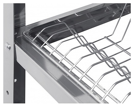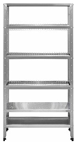 Стеллаж Luxstahl СРСП предназначен для сушки и кратковременного хранения чистой посуды на предприятиях общественного питания и торговли. Модель оснащена 1 сплошной полкой, 3 полками для посуды, перфорированной полкой для сушки стаканов и поддон-полкой с углублением для сбора стекающей воды и ножками. Разборный каркас выполнен из нержавеющей стали AISI430 толщиной 1,5 мм, полки - из нержавеющей стали AISI430 толщиной 0,8 мм. Изделие поставляется в 2 отдельных упаковках для полок и стоек. В комплект поставки входят пластмассовые опоры, позволяющие регулировать высоту стеллажа или выставить его по уровню.