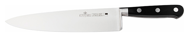 Поварской нож Luxstahl Master XF-POM119 используется на предприятиях общественного питания и торговли, в частных домах и квартирах. Модель оснащена шейкой между рукояткой и лезвием, которая защищает пальцы, не допуская их контакта с лезвием. Нож подходит для интенсивного использования. Изделие выполнено из нержавеющей стали X50CrMoV15, рукоять - из пластика. Дополнительные характеристики: