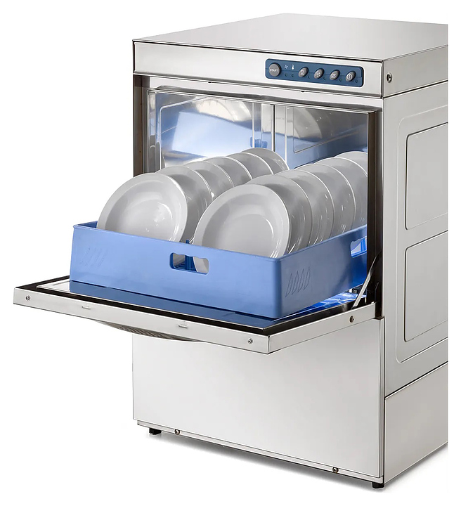 Посудомоечная машина с фронтальной загрузкой Dihr GS 50 используется в барах, ресторанах и гостиницах для мойки стаканов, чашек, небольших тарелок и приборов. Модель оснащена встроенной системой переливной и сливной трубки для тройной защиты моечной помпы и клапаном защиты от обратного тока. Корпус выполнен из нержавеющей стали AISI 304. Особенности:
