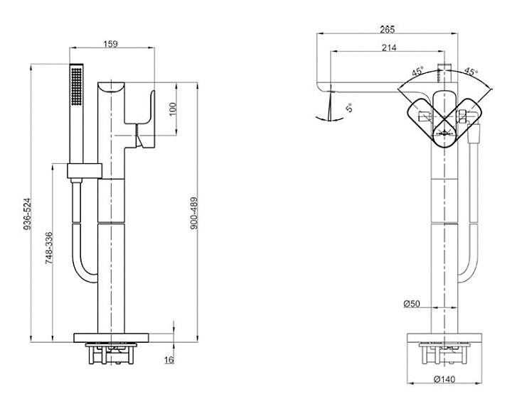 Смеситель для ванны напольный Villeroy & Boch Universal TVT00050300061
