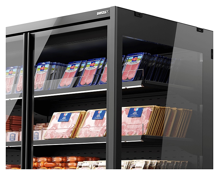 Холодильная горка Dazzl Vega DG 090 H210 М 250 предназначена для эффектной демонстрации и кратковременного предпродажного хранения предварительно охлажденной мясной продукции на предприятиях общественного питания и торговли. Модель оснащена подставкой с воздухопроводящими решетками, распашными дверьми и 5 навесными экспозиционными полками с наклонными профилями ценникодержателей. Двери с прозрачными стеклопакетами с низкоэмиссионным твердым покрытием. Модель доступна в 10 стандартных цветовых исполнениях фронтальной панели по таблице RAL: 9003, 9006, 9005, 3004, 7024, 1016, 6018, 3020, 5017 и 1015. Холодильный агрегат и боковины не входят в комплект поставки и приобретаются отдельно. Особенности: