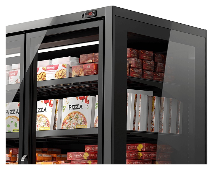 Морозильная горка Dazzl Compass 090 H210 125 предназначена для эффектной демонстрации и кратковременного предпродажного хранения предварительно замороженной продукции на предприятиях общественного питания и торговли. Модель оснащена распашными дверьми с рукоятками, подставкой с воздухопроводящими решетками и 5 навесными экспозиционными полками с наклонными профилями ценникодержателей. Двери с энергосберегающим тройным прозрачным остеклением. Модель доступна в 10 стандартных цветовых исполнениях фронтальной панели по таблице RAL: 9003, 9006, 9005, 3004, 7024, 1016, 6018, 3020, 5017 и 1015. Холодильный агрегат и боковины в комплект поставки не входят и приобретаются отдельно. Особенности: