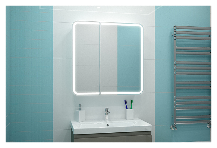 Шкаф зеркальный Misty Альфредо 80х80 см с подсветкой, датчиком движения и розеткой