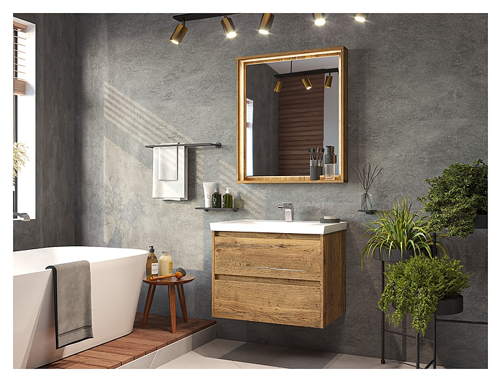 Зеркало Misty Dallas-60 с подсветкой, дуб галифакс