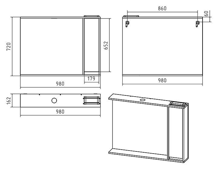 Шкаф зеркальный Misty Алиса-100 98х72 см с подсветкой, правый, белый